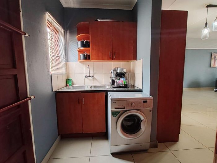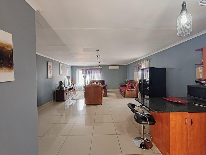Enjoy tranquil family living in Sunset View complex, Stonehenge Ext 1 — corner erf with koppie views, spacious yard for kids and pets, open-plan living, three beds, two baths, double garage.